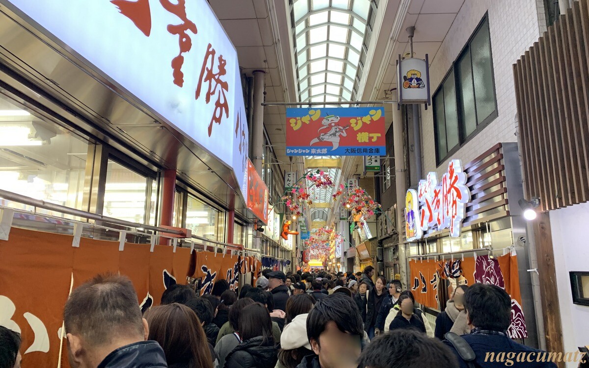 年末に行ったこともあってか、長蛇の列。狭いジャンジャン横丁のお店の前に2列になって並んで更に列は1列でUターンしている。お店は両側にあり、空いた方に入れるのだが、両方合わせて50席ほど。この日は開店前から90人が並んでいたのだそう。空いたかな?と14時15分ぐらいに行って、50分待ってようやく入れた。