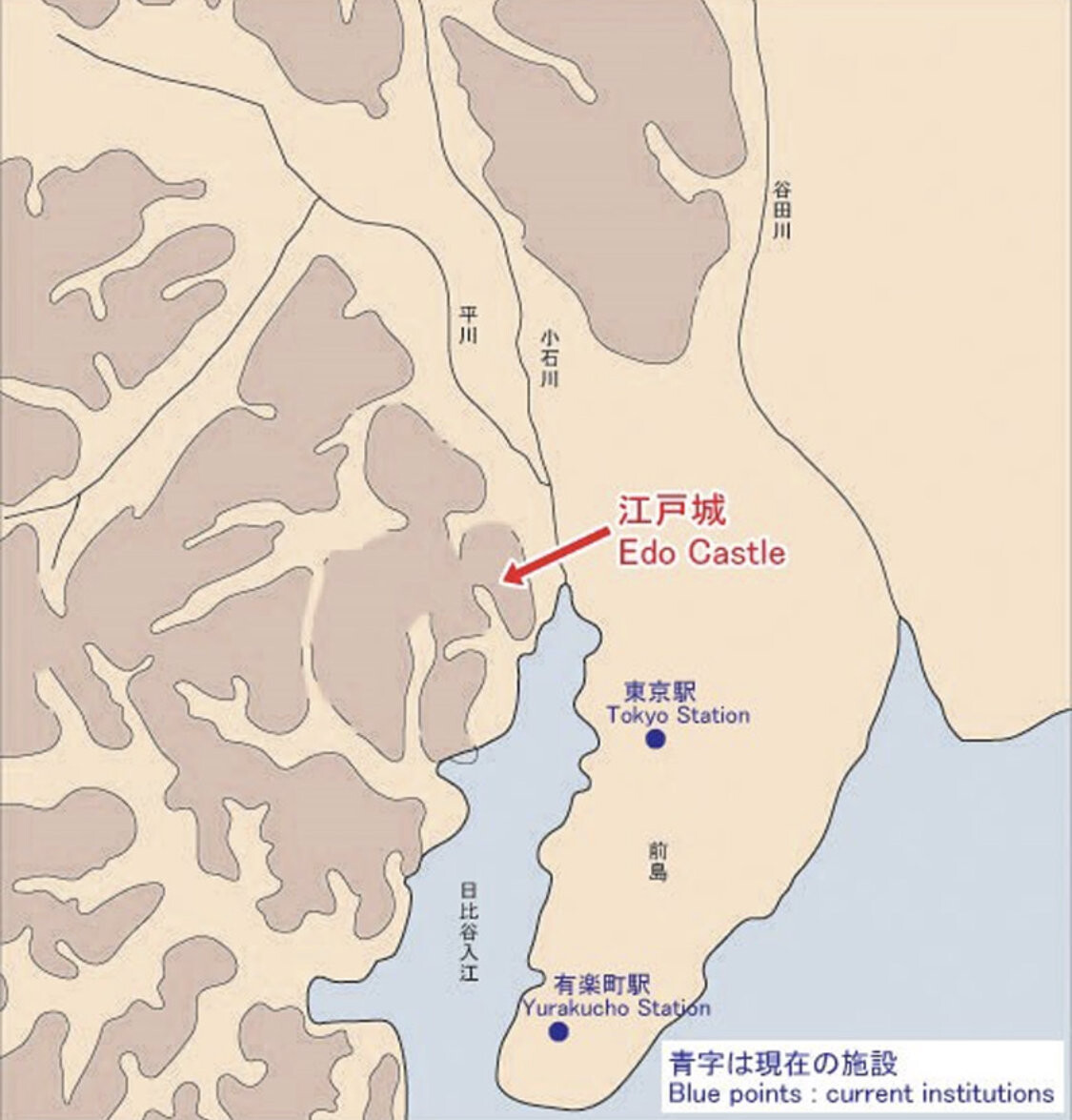 皇居の東側に付属している広さ約21ヘクタールの庭園。かつての江戸城の本丸・二の丸・三の丸に位置する。本丸には江戸幕府将軍の住居である本丸御殿や天守閣があり、城の中枢であった。 1968年から一般に公開されている。「江戸」は入江の入り口を意味する言葉だとされていて、かつて日比谷まで入江が迫っており、何本も川が流れていた。12世紀には江戸氏と言う有力武士が館を構え、室町時代後期には、太田道灌が江戸城を建てた。徳川時代より前の江戸では、まさかここまで海が迫っているとは知らなかった💦