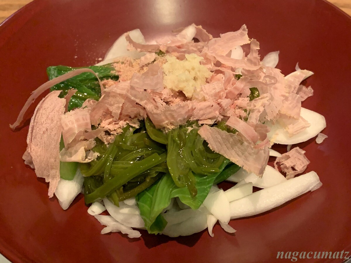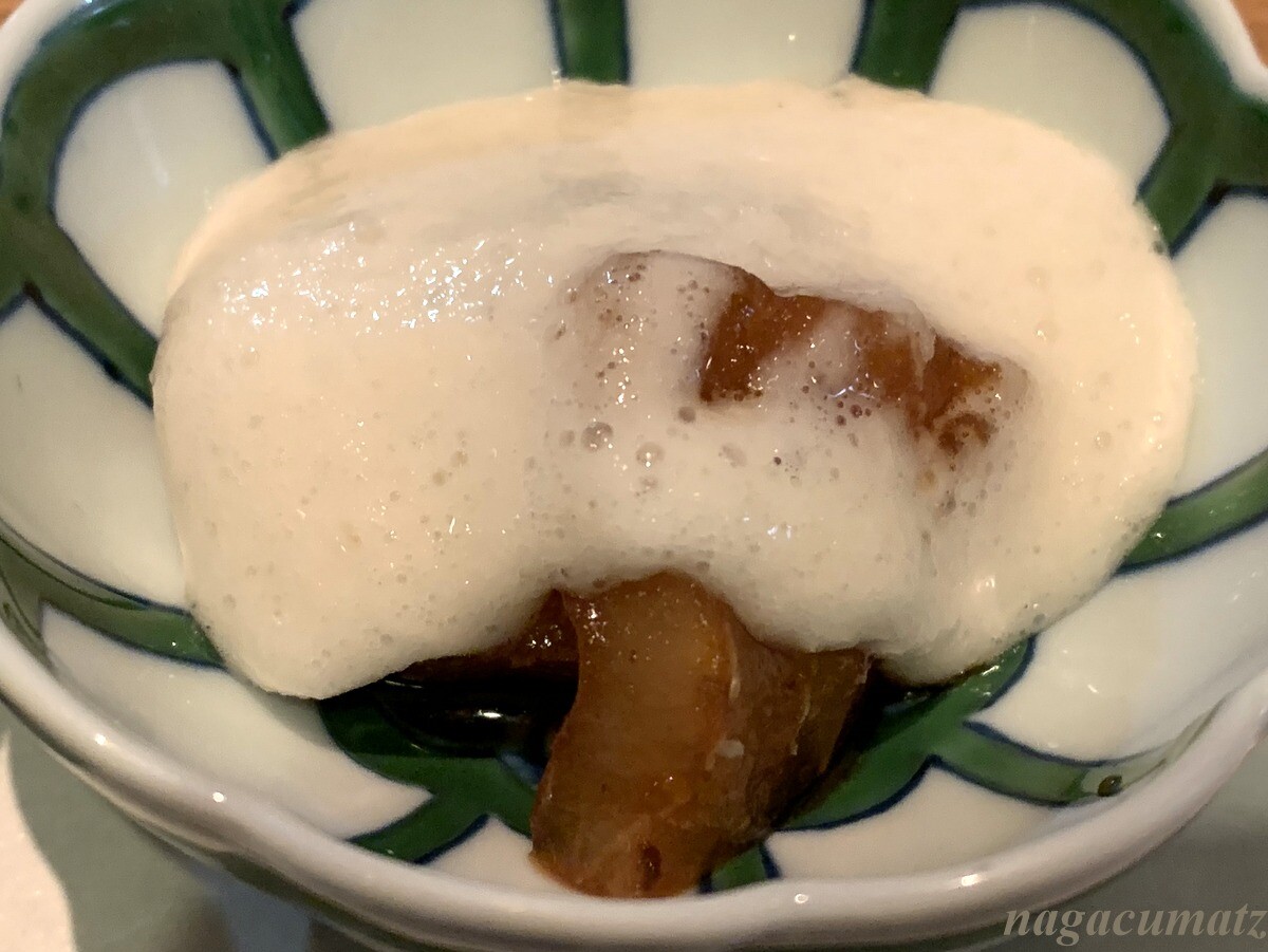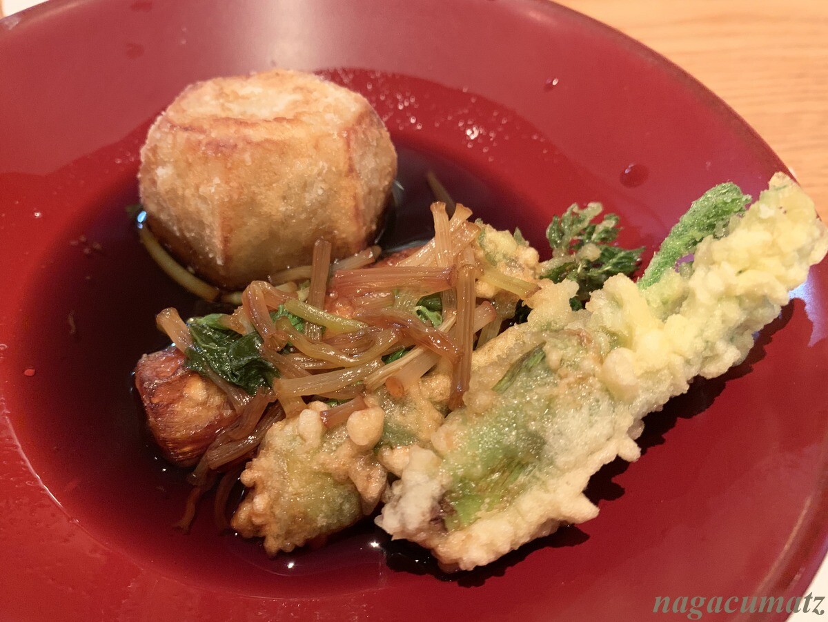 山菜と小芋の揚げびたし やはりこれもお醤油味がしっかりしていて、甘目なので、天丼のタレのようだった。