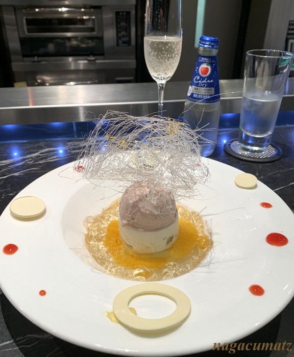 小田原産の梅と梅酒を使ったムースとジュレの上には、イチゴのアイスクリームに桜風味をつけてあるとのことだったが、桜は感じられず・・・