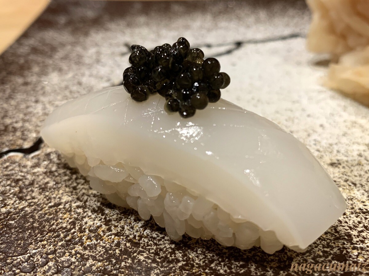 墨烏賊のキャビア乗せ