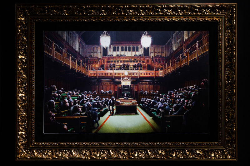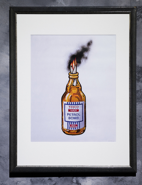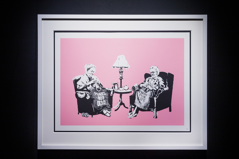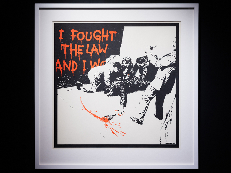 因みに、この作品が描かれた場所はカーゴ・バー近くのリビントン・ストリートにある「グラフィティ・エリア」と言われ、市政当局に塗りつぶされるだけでなく、競合するグラフィティ・ライターの嫉妬から塗りつぶされたりもすれば、切り取られて高額で売買されたり、自然に朽ちていくものも。今日このバンクシーの作品は他のストリート作品とは違い、ガラスで保護されている。