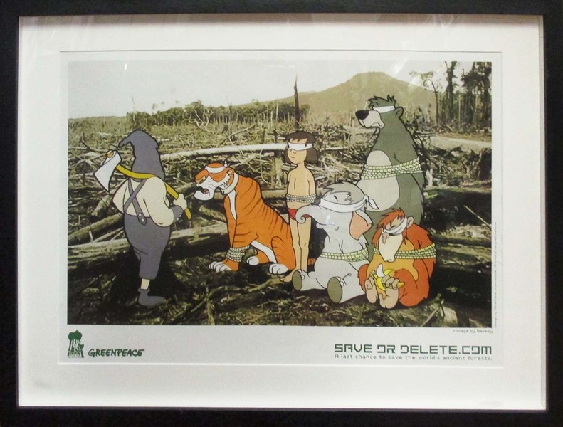 ●「スープ・カンズ」2003年 テート・モダン(ロンドンにある国立近現代美術館)に、老人の格好をしてこの作品を無許可で飾って行ったもので、イギリスの自然史博物、ルーブル美術館などにも侵入して作品を勝手に陳列したことも。ブランド思考や、アートへの問題定義が目的とのこと。缶を良くみると、TESCO社のトマトスープと書いてある。バンクシーの故郷であるブリストルで量販店のテスコ進出反対の運動を受けて。