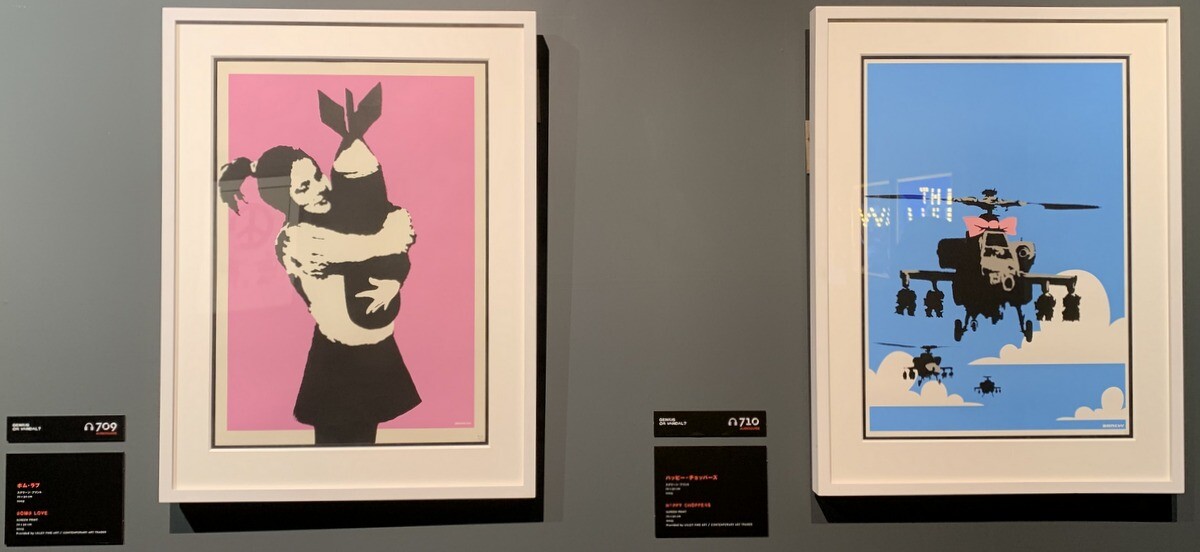 ●「バンクシーVSブリストル・ミュージアム」2009年、ブリストル・ミュージアムでバンクシーの個展が開催され100点以上が公開。その年のイギリスで一番多い来場者数となったが、入場無料で、バンクシーの報酬は1ポンドのみ。ポストカードだけが売られたが、バンクシー曰く「納税者の金が自分の作品を消すのではなく飾るのに初めて使われた初めてのショーだ」と。