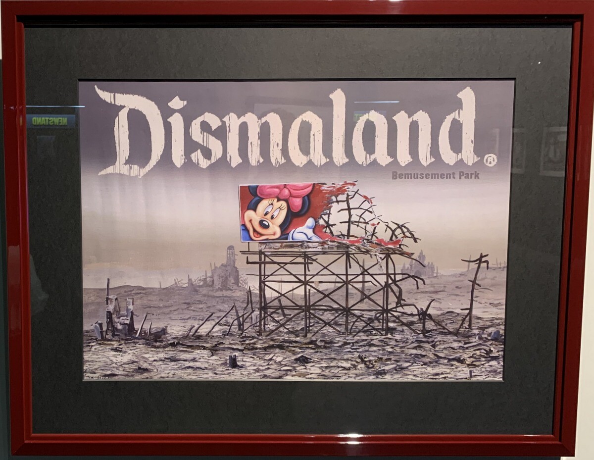 ●ディズマランド バンクシーがプロデュースしたテーマパークで、イングランドのウェストン=スーパー=メアにて、2015年5週間の期間限定で開催。ダミアン・ハーストやジェニー・ホルツァーなど、バンクシーを含む計58名のアーティストによる作品が展示された。入場料は当日3ポンド、5歳以下は無料。会期中に延べ15万人以上が来場し、地元への経済効果は約2000万ポンド(約35億円)。ディズマランドで使用された木材や設備は、閉園後、フランスのカレーで難民キャンプのシェルター建設に利用された。