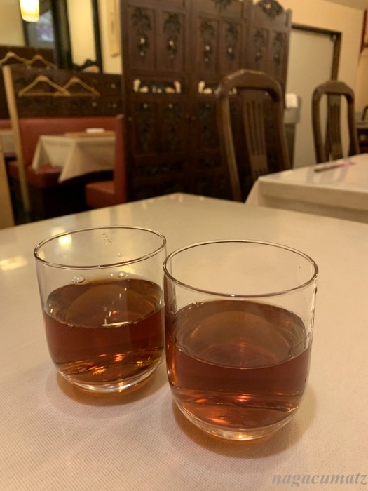 四川料理のお店へ。紹興酒12年もののグラス 各700円