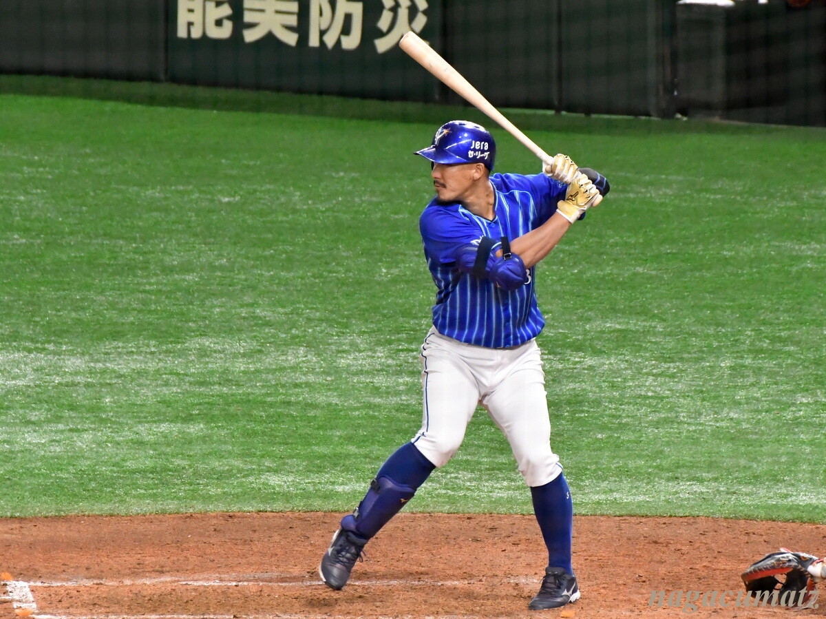 ベイスターズの梶谷選手は、結構ダンディにバッターボックスに立っている。