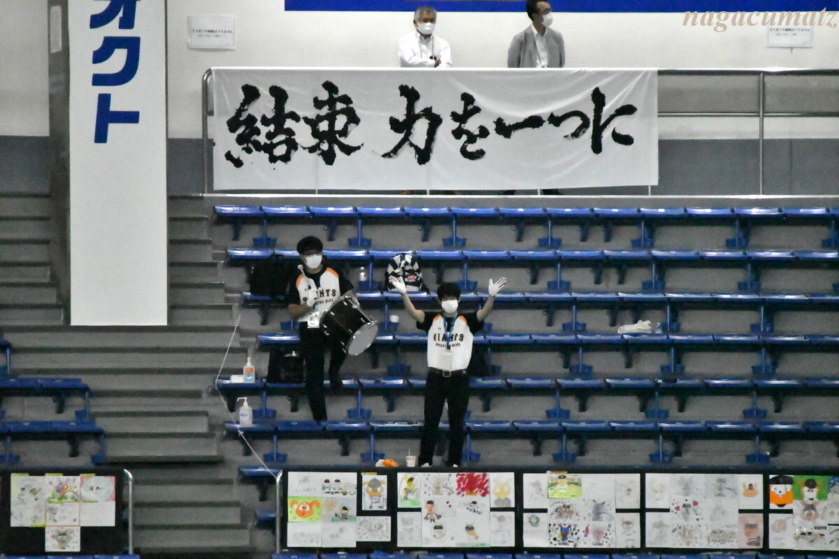前回、7月末に巨人 vs 広島戦を観戦に来た時にはなかったが(その時の様子は こちら)、今回はドラムの人の前に子供ファンが描いたと思われる絵などが飾ってあった。