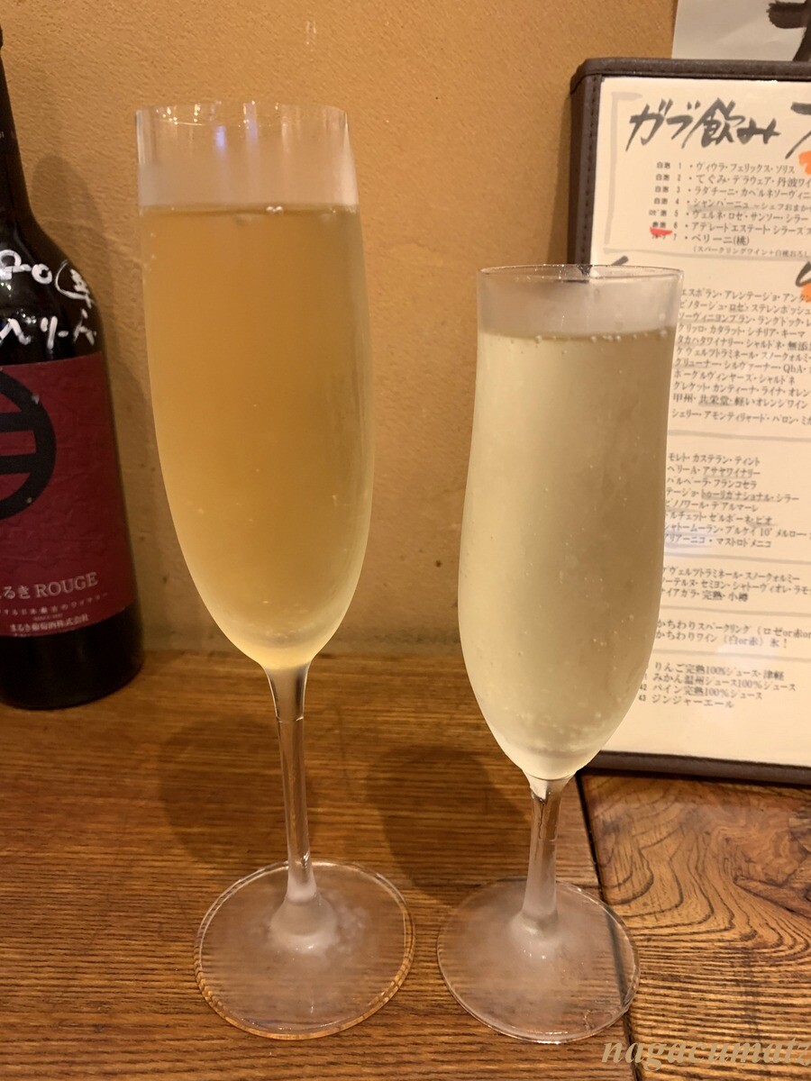 シャンパーニュのヴーヴドノーザック980円や、ラダチーニ・スパーク780円などと共に。