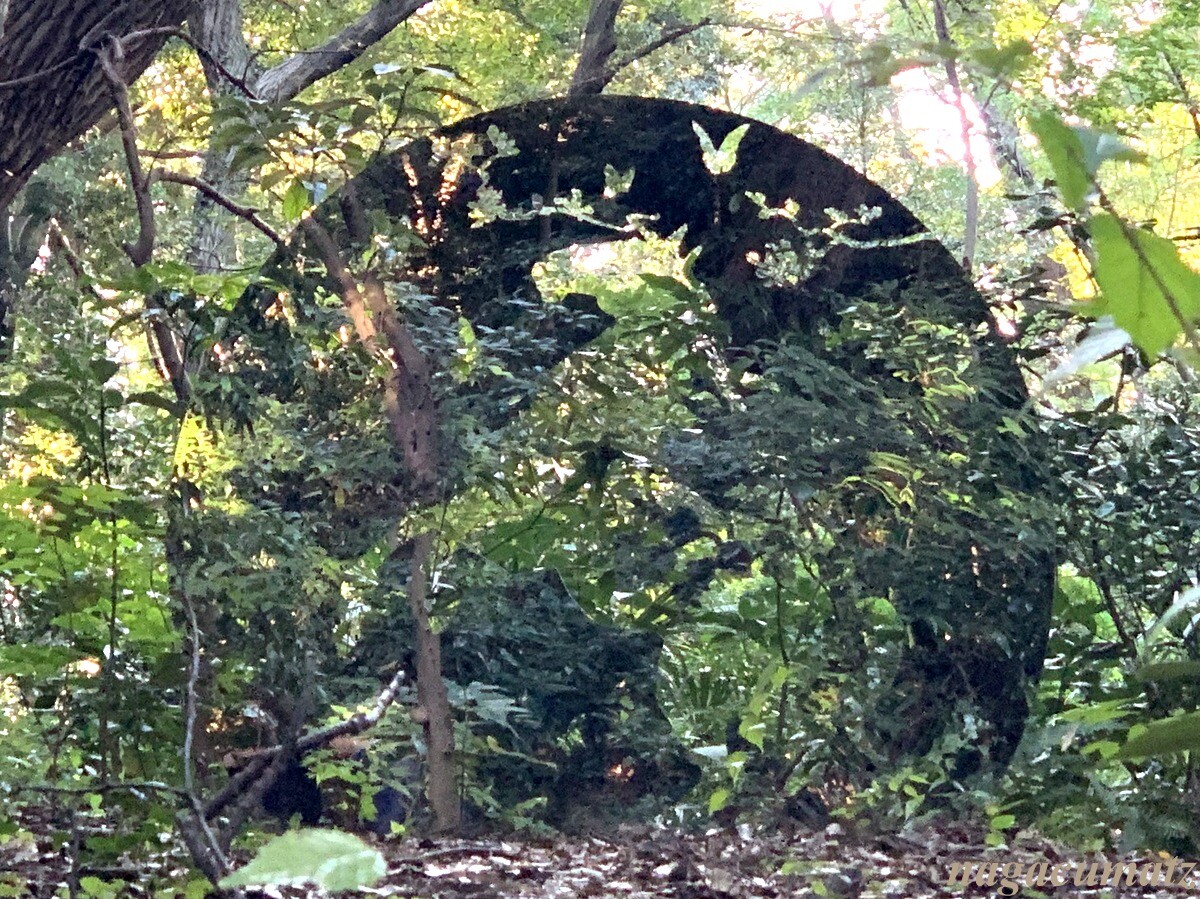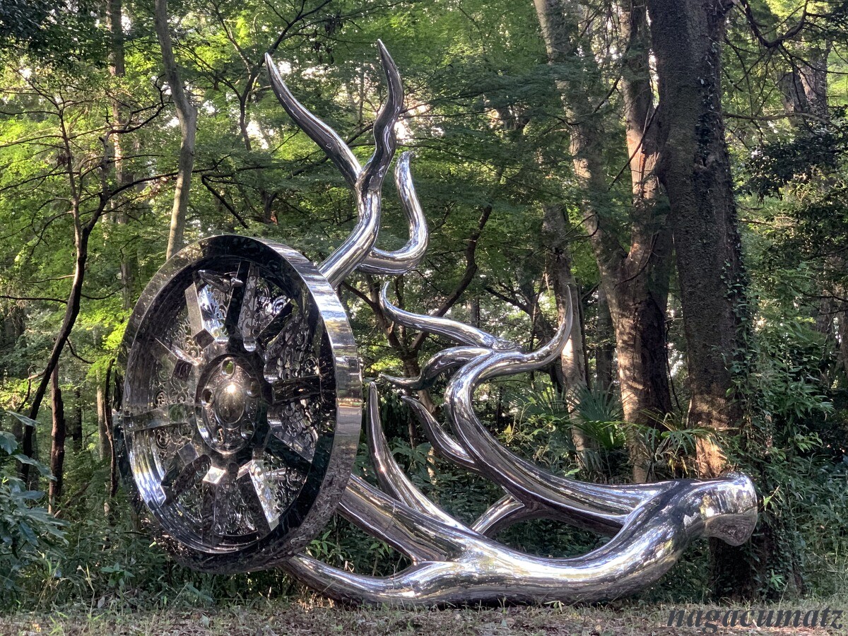 今年は、明治神宮創建100年として、「神宮の杜 芸術祝祭」なるものが開催されている。100年の歴史でアートの舞台になるのは初めてとのこと。野外彫刻展「天空海闊」は、そんな森の中に4ヶ所。参道は神聖な場所なので車両は侵入禁止、また、禁足地も多く、搬入作業などが大変だったのだとか。
