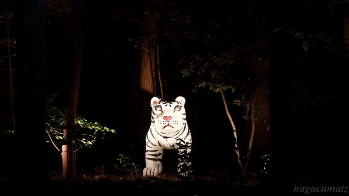 ましてや暗くなると、ライトアップされた白虎が暗闇に浮かび上がり、凄い存在感となっていた。