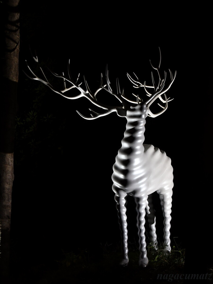 暗い中の雄姿は、より光り輝いて、高貴な鹿をイメージさせていた。