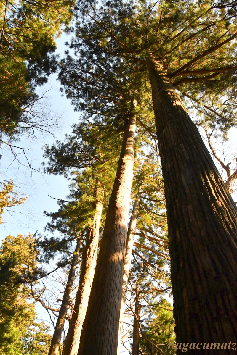 千本杉 この神社の杉のある一帯には、樹齢100年~400年の杉が千本以上あるとのこと。