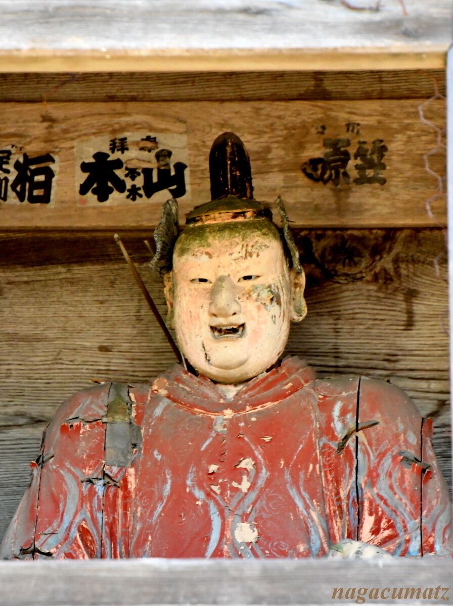 随神門(旧二王門)は、弘化4年(1847年)再建。重要文化財。元来は仁王門だったが、神仏判然令が出された時に随神門と呼ばれるようになった。中には仁王像ではない随神像が。