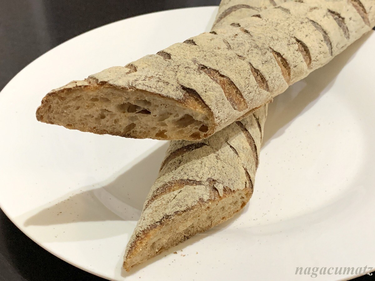 金曜日のバゲット ライ麦と石臼で挽いた小麦との配合で、柔らかめとのこと。風味がとても良い。