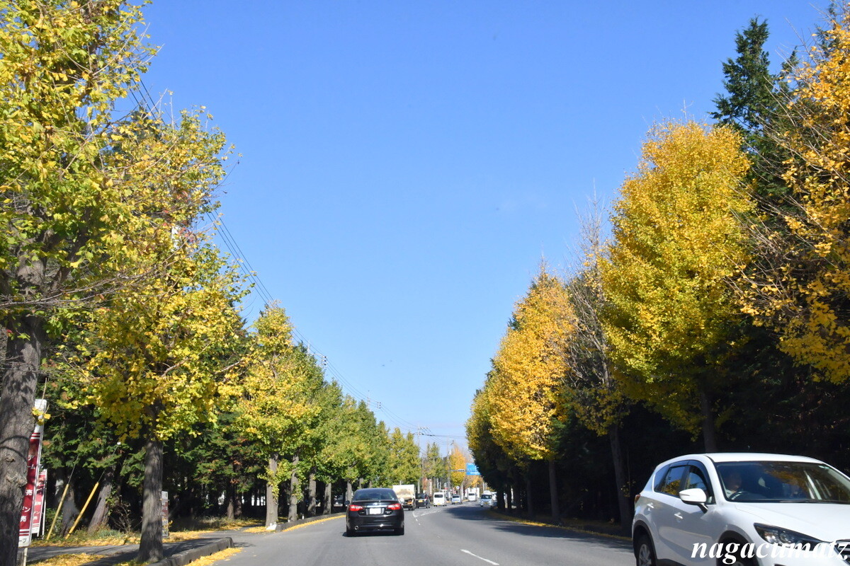 あいにく公園内のイチョウ並木はもう落葉していたが、近くの通りでは未だ綺麗なイチョウ並木を見ることが出来た。