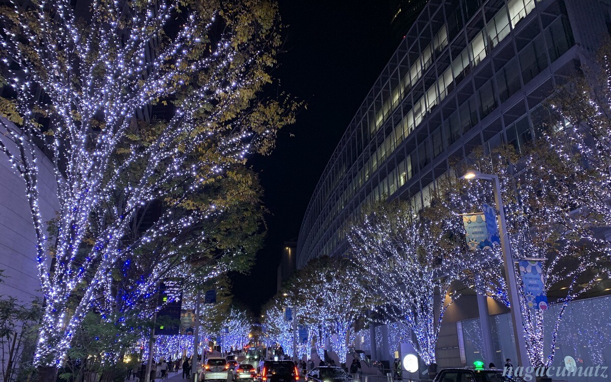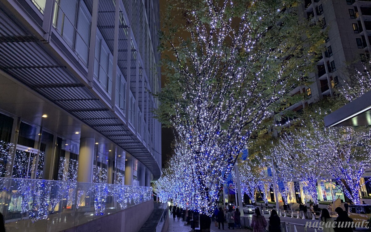 約400メートルの並木に約70万個のLED「SNOW & BLUE」は、やはり落ち着いたイルミネーションで綺麗だなと。羽田空港の第二ターミナル、表参道ヒルズ、渋谷ヒカリエ、京都平等院のライトアップ等のライティングを手がけた、ライティングデザイナーの内原智史氏がデザインしている。