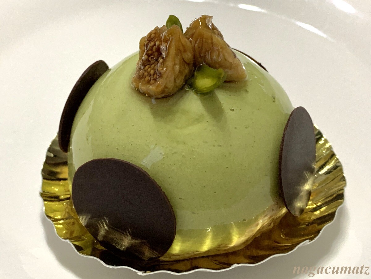 ピスタチオのバヴァロワとムースフィグとなっているシェフのスペシャリテとのこと。とても柔らかく半分にカットすると潰れてしまったのだが、フィグのムースが美味。