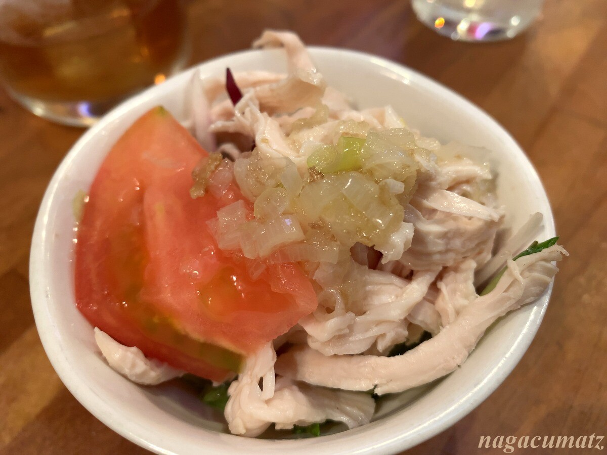 突き出しは蒸し鶏