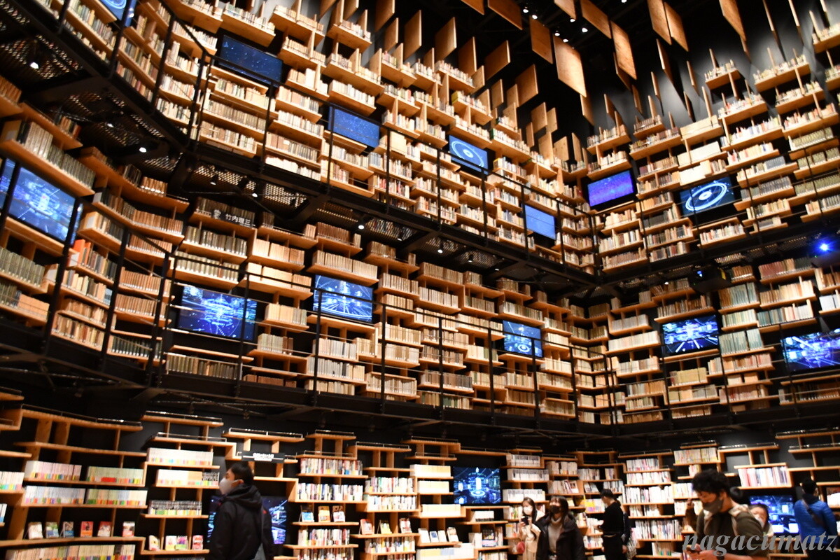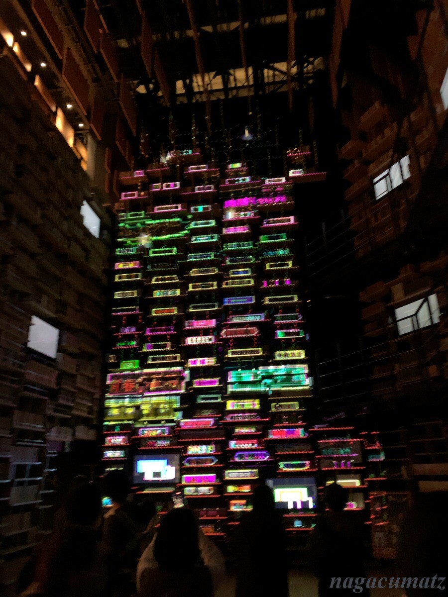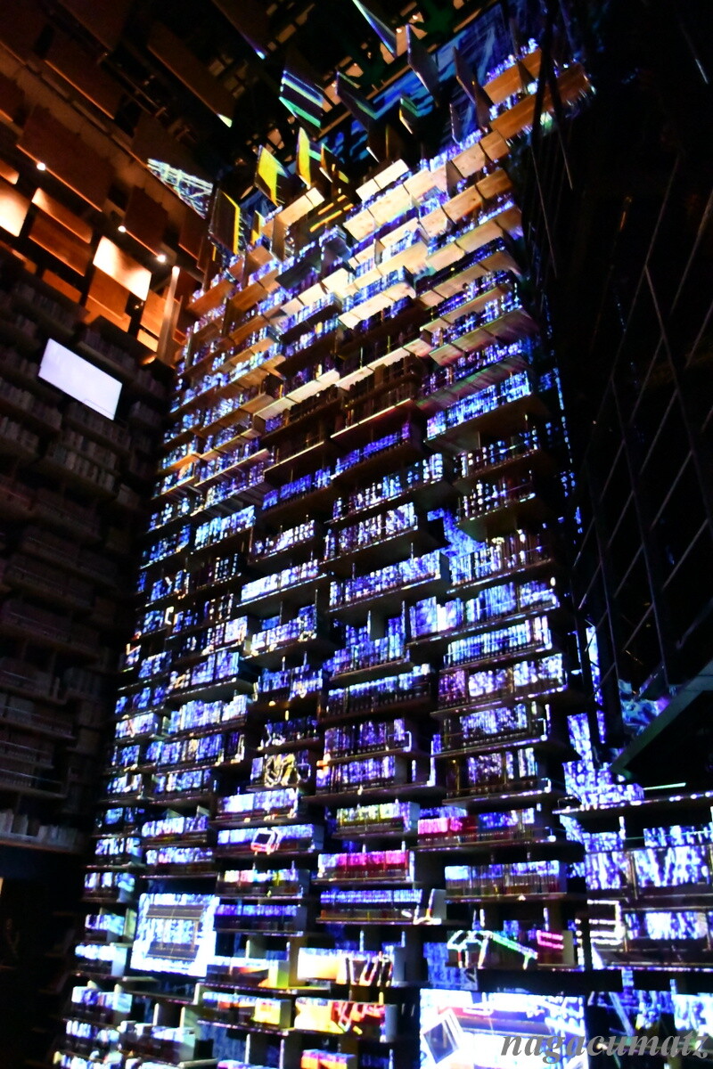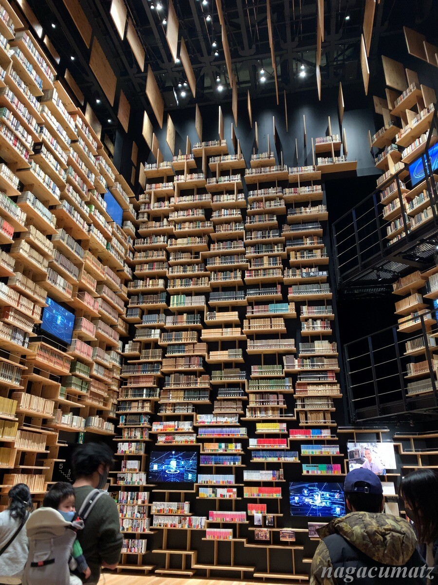 まずは、美術館、博物館、図書館が融合したと言われている、隈研吾氏の設計による角川武蔵野ミュージアムに行ってみた。とにかくその形、大きさに圧倒される。ぐるっと回ってどこから見ても違う表情になっていて面白い。