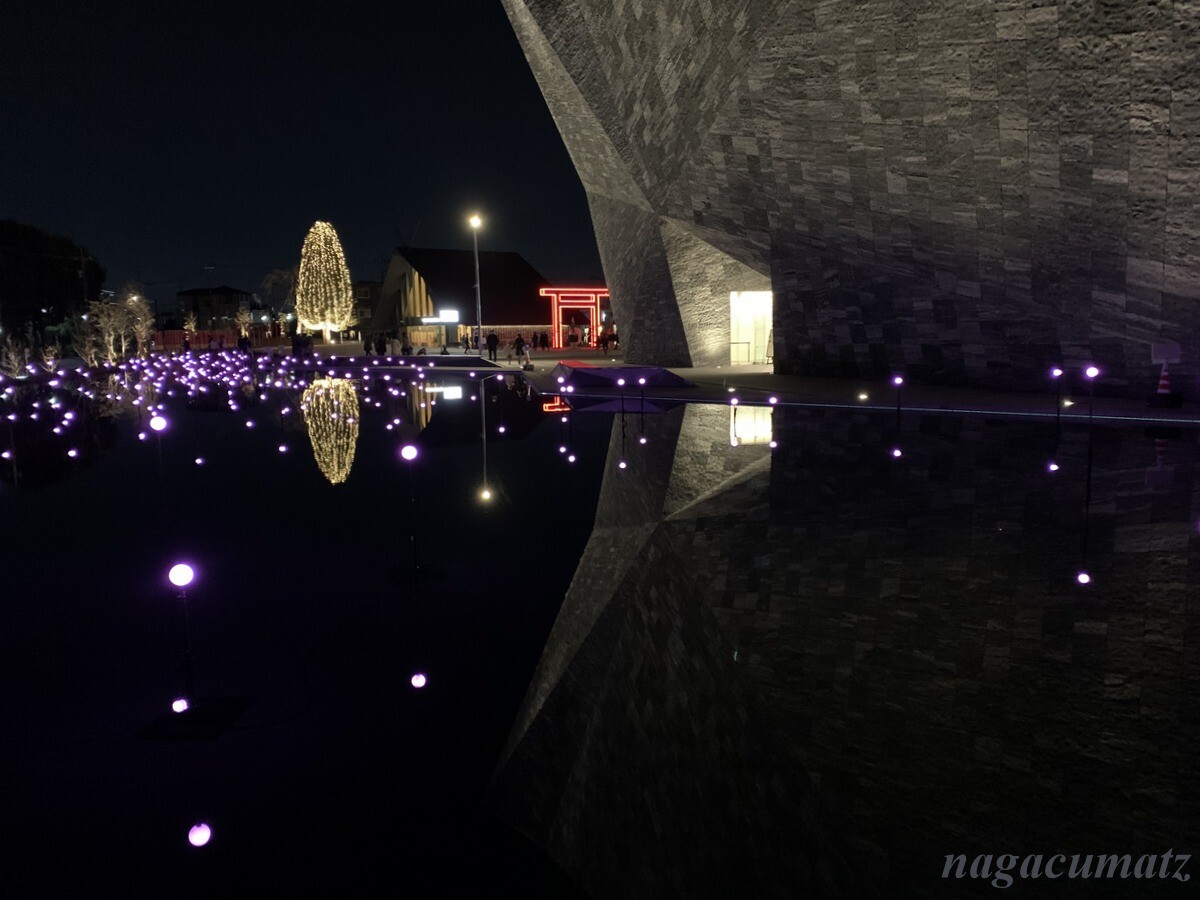 「冬花見」と言われるイルミネーション。ピンク、青、緑など色々と変わっていた。
