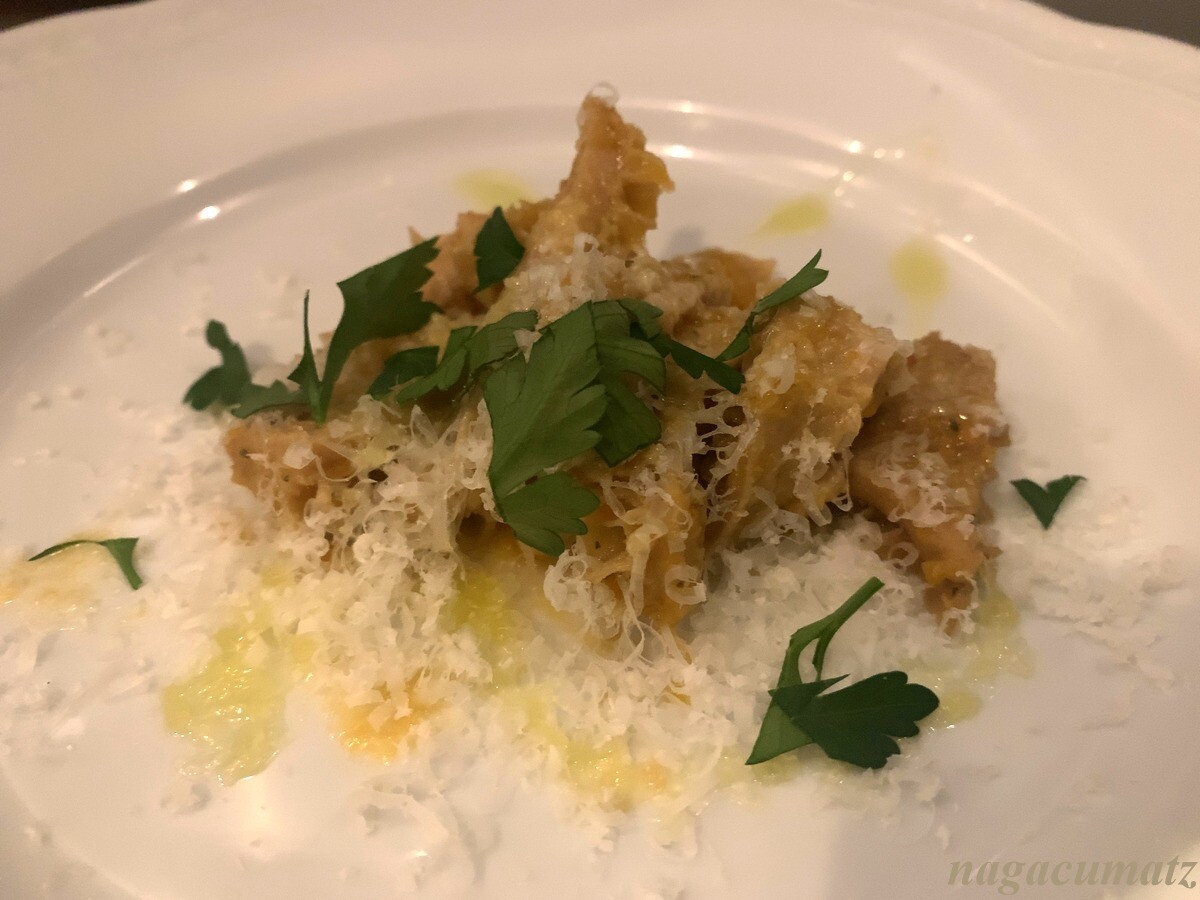 マンディッリ ジェノベーゼ 1580円。ラザニアよりもやや薄めの生地はつるんとしつつ噛むときゅっとした食感もあり、美味しい。