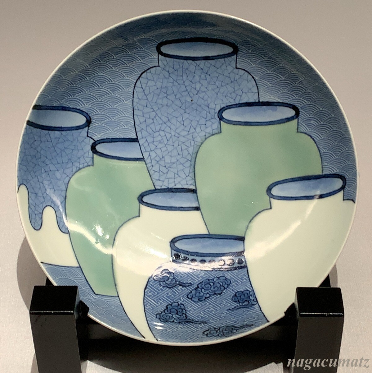 「青磁染付七壺文皿」 大川内・鍋島藩窯 江戸時代18世紀