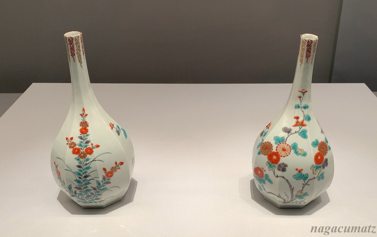 「色絵菊桔梗文瓶」有田 江戸時代17~18世紀 片側に菊、反対側に桔梗が描かれている。