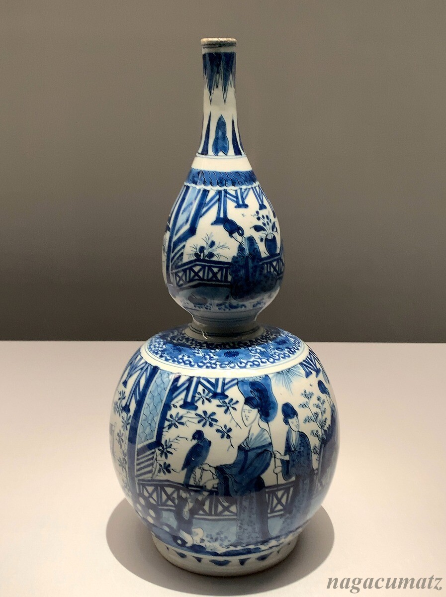 「染付人物文瓠形瓶(ひさごがたへい)」オランダ 17世紀