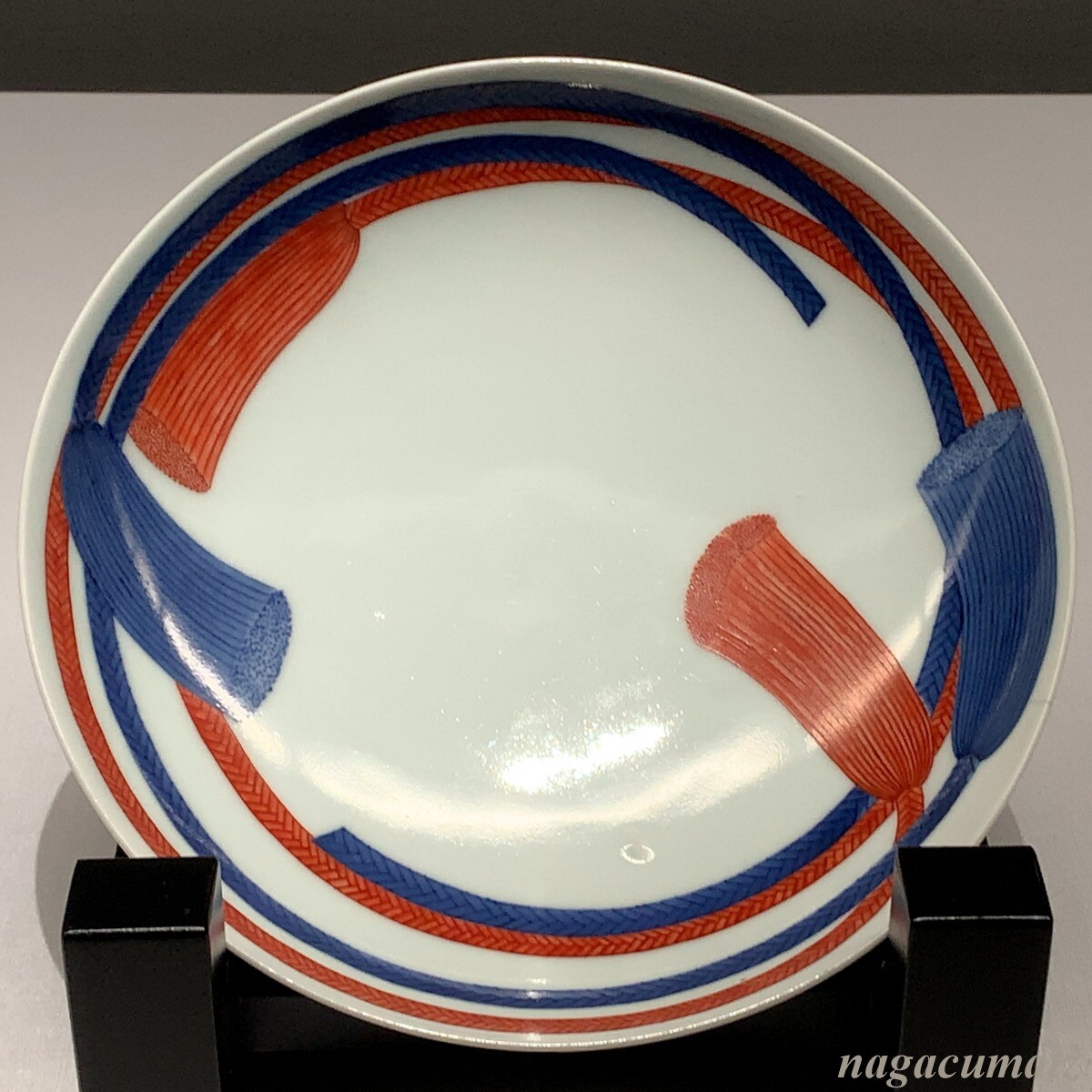 「色絵組紐文皿」大川内・鍋島藩窯 江戸時代17~18世紀 「染付雲雷文大皿」大川内・鍋島藩窯 江戸時代17~18世紀