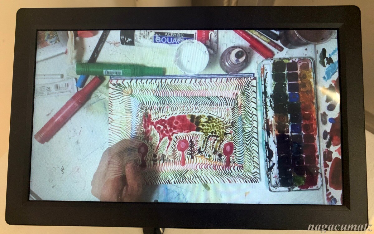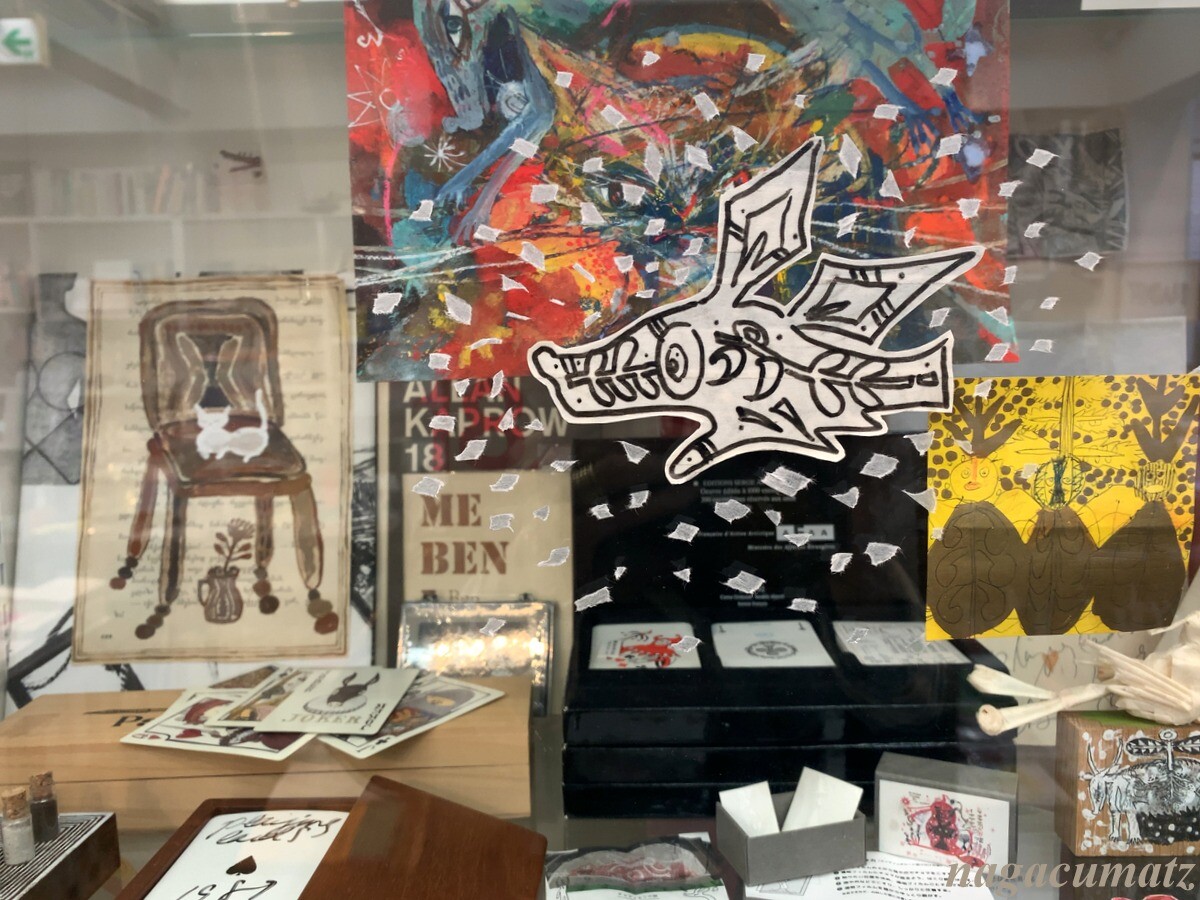 2010年に初めて開催された「あいちトリエンナーレ」で拝見したのが最初だが、部屋中に描かれた作品には圧倒された(その様子は こちら)。そしてその内覧会・レセプションパーティで出されたチョコレートファウンテンのチョコレートを使って、その場でささっとテーブルクロスに絵を描かれたのが一番印象に残っている(その様子は こちら)。