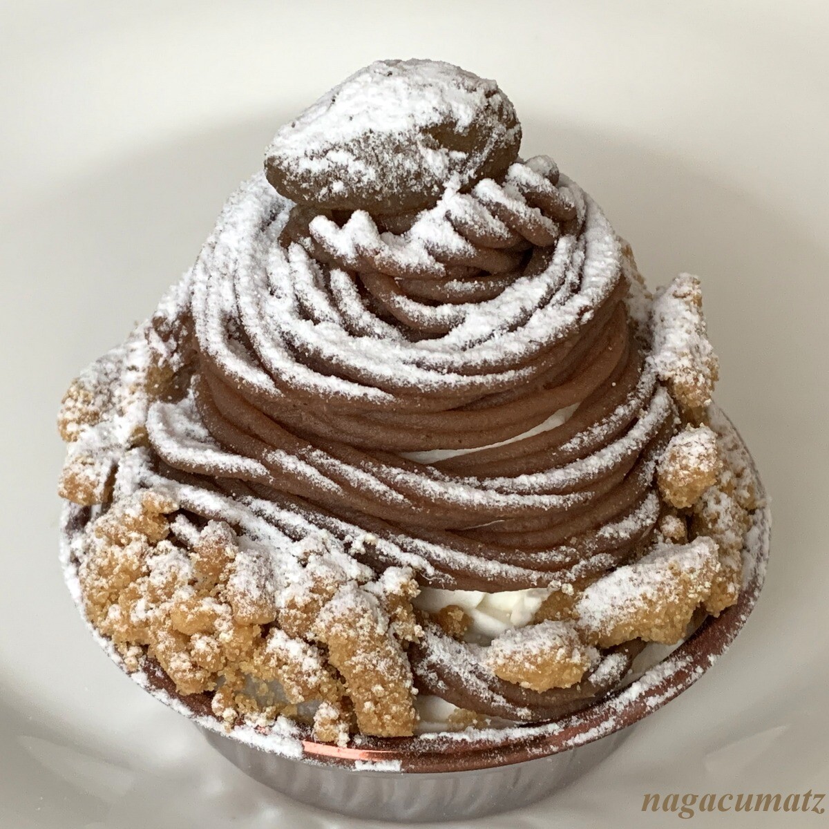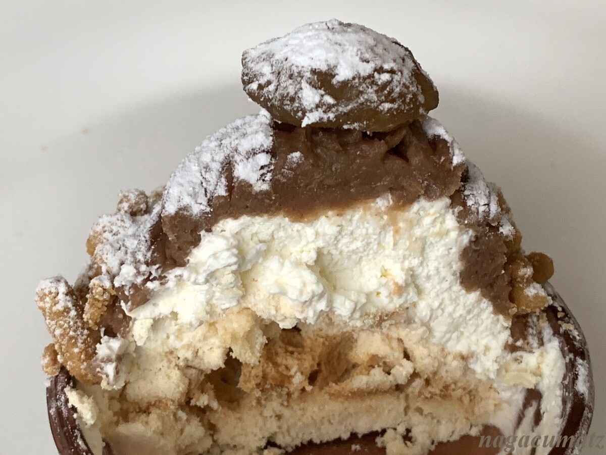 モンブラン 596円 フランス産の栗のペーストは甘さ控え目。驚くのは、中に生クリームとメレンゲの他、求肥が入っている。和菓子とのコラボは禁じ手かとも思うが美味しい。