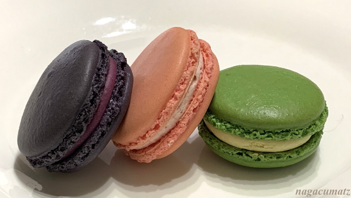 マカロンは、カシス、ストロベリー、ピスターシュ 各278円。それぞれクリームのお味も良い。