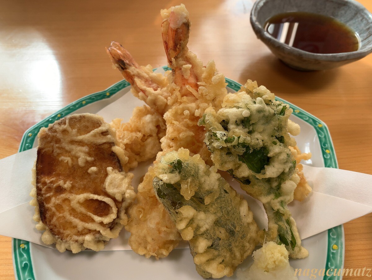 海老天定食 1300円 プリプリの海老が三尾。