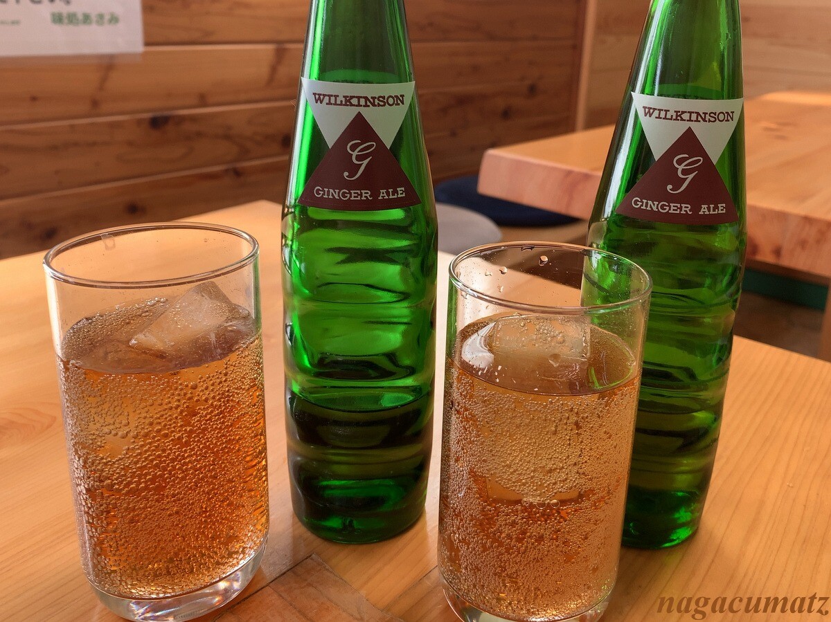 ひとり1300円以上の注文で、フリードリンクとのこと。ジンジャエールの辛口をいただいた。