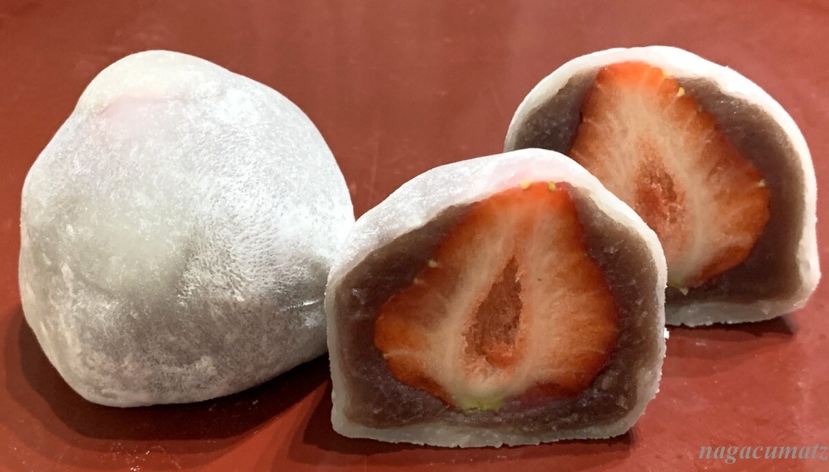 あまおうの苺大福 2個入り 840円 なるほど美味。餡もしっかり甘さがあるので、甘いあまおうとは言え、その酸味をも引き立ててくれている感じ。