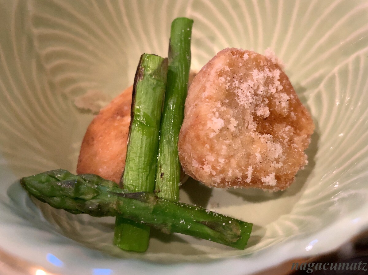 突き出しは静岡の海老芋と栃木のアスパラ。