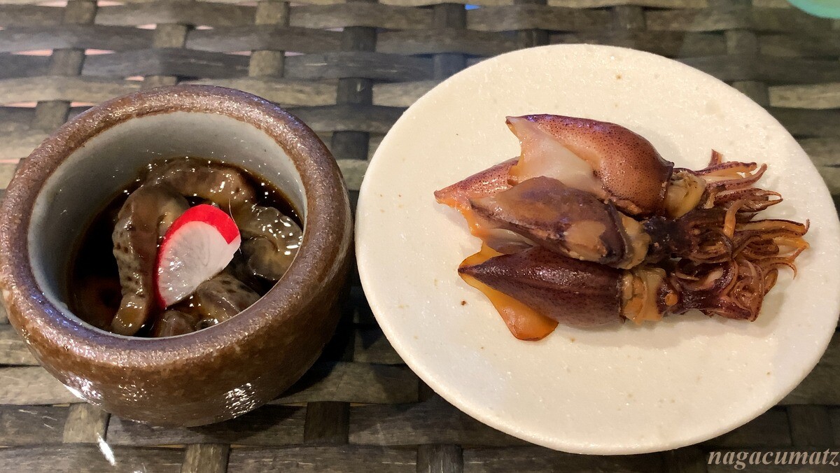 富山のホタルイカの燻製と、兵庫の赤なまこ(半量)