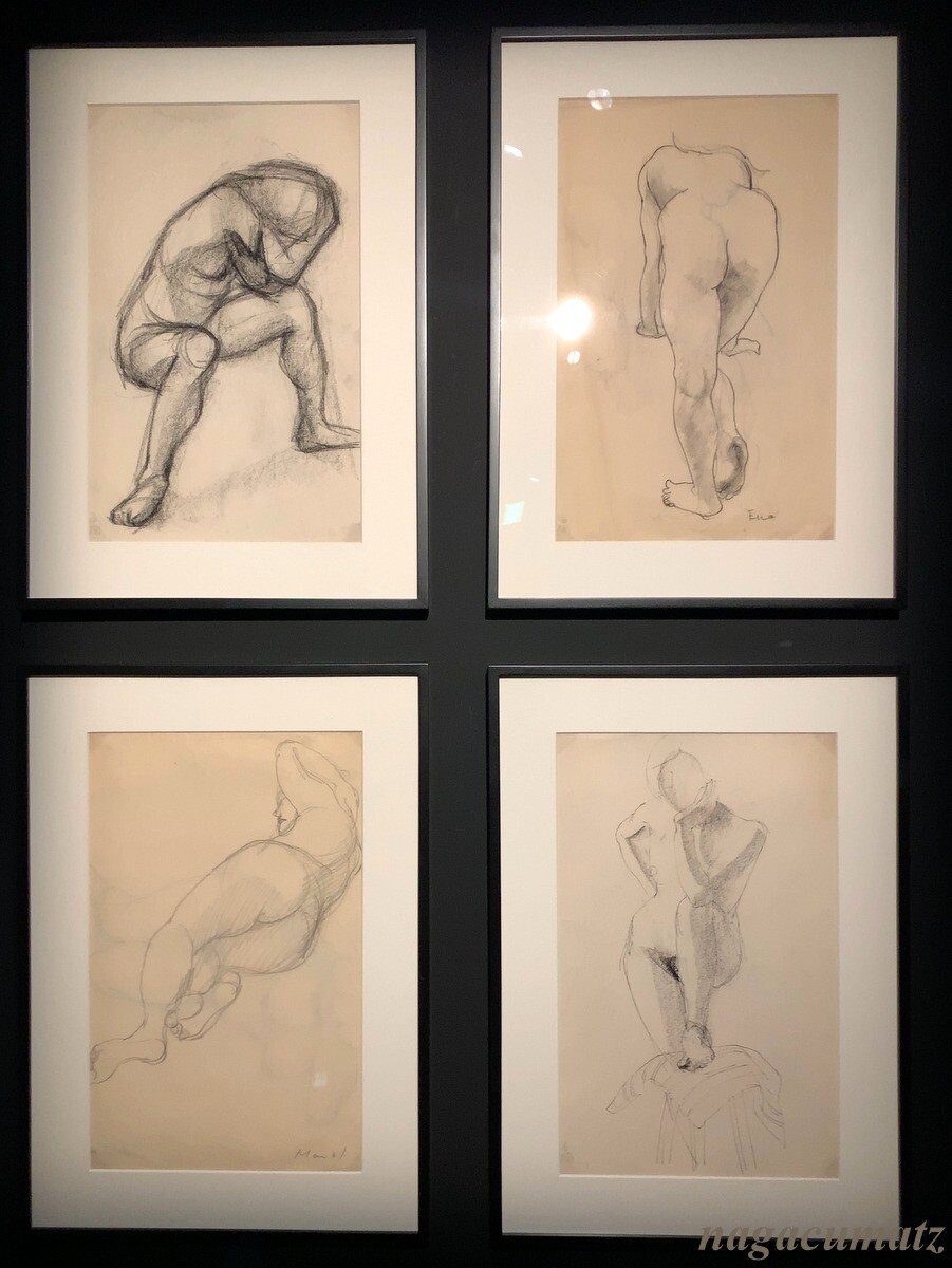 「裸体のクロッキー」1960年の資生堂入社試験のときに提出した作品シリーズ。他の学生達がポスターや直ぐに仕事に役立ちそうな作品を持って行ったが、彼女はこのシリーズを多量に持って面接に臨んだとのこと。