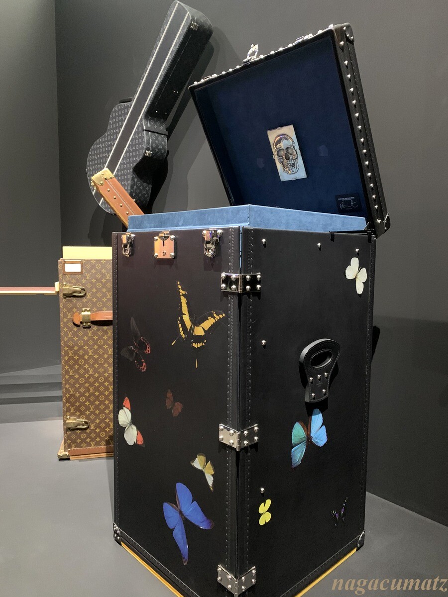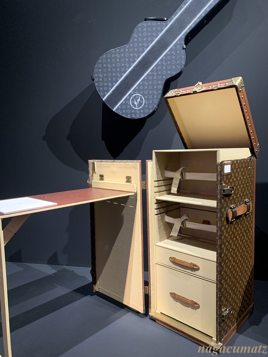指揮者で作曲家のストコフスキーの為の「ストコフスキーのデスク・トランク」1964、キム・ジョーンズとフラグメントデザインの藤原ヒロシとのコラボの「ギターケース」2017-2018
