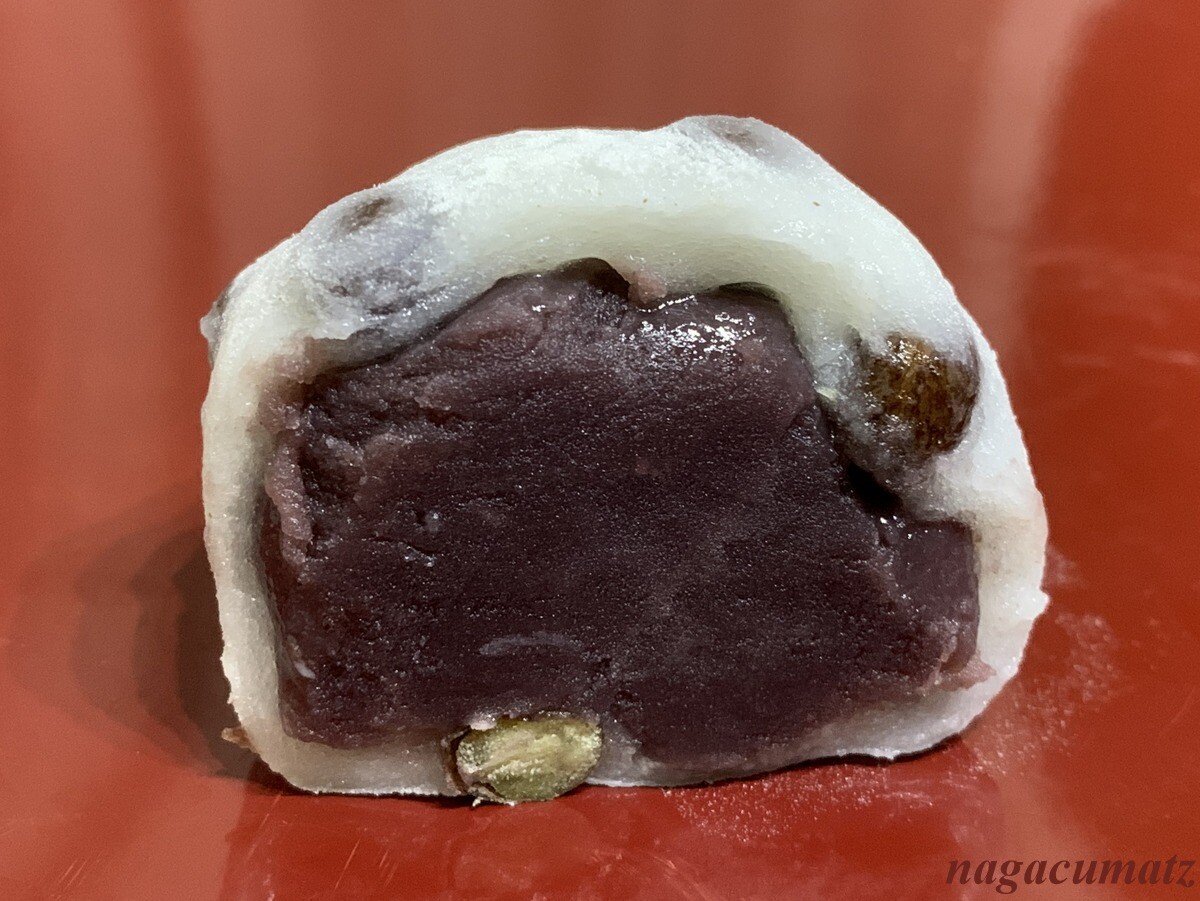 塩豆大福 280円 分厚く硬めの生地の豆大福が多い中、このお店の生地は薄めで柔らかく気に入った。