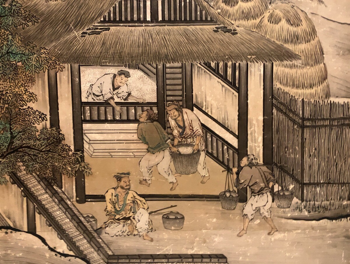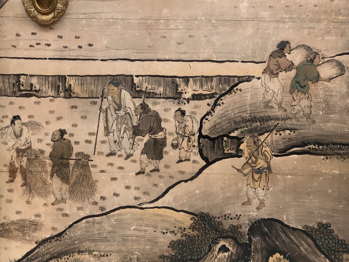 360度ぐるりと正寝殿を飾っていた絵は、季節による農作業の様子が順番に描かれている。