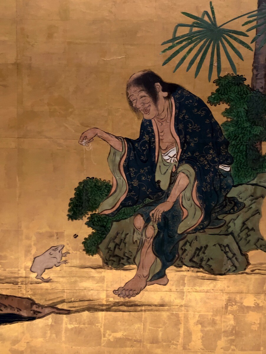 中国の仙人達の姿を描いている。狩野派では、教育の過程として、中国の仙人などを写し描くことが重んじられていた。蛙とたわむれるガマ仙人など9名の仙人と童子が描かれている。