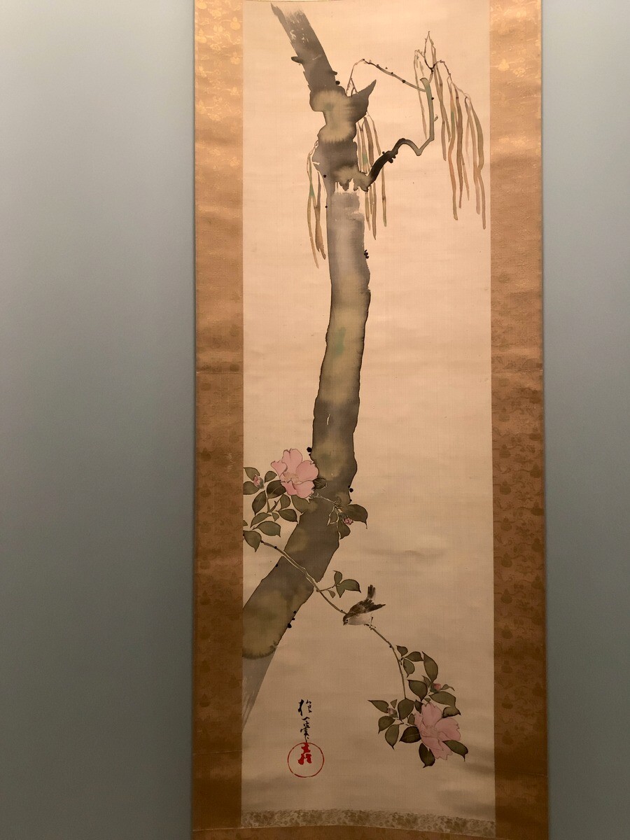 琳派の祖とも言われる酒井抱一。楸とサザンカの枝にとまる鷦鷯は、「十二ヶ月花鳥図」の陰暦10月に当てられており、晩年の作品と考えられている。