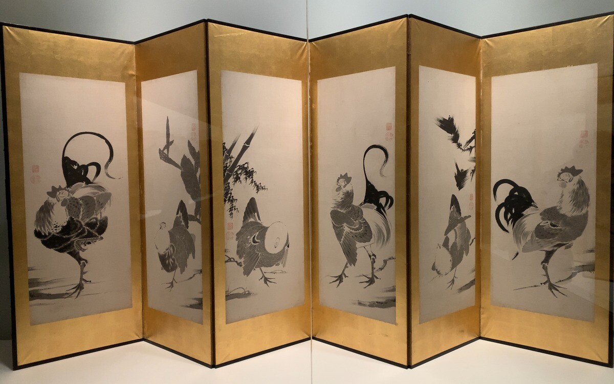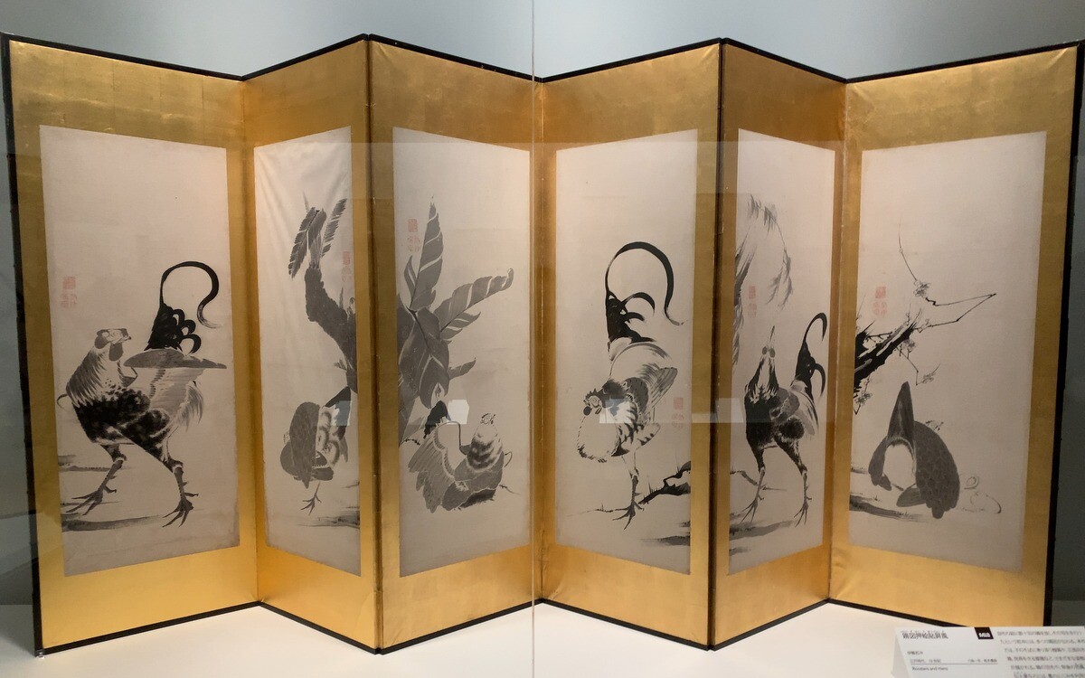 伊藤若冲「鶏図押絵貼屏風」江戸時代18世紀