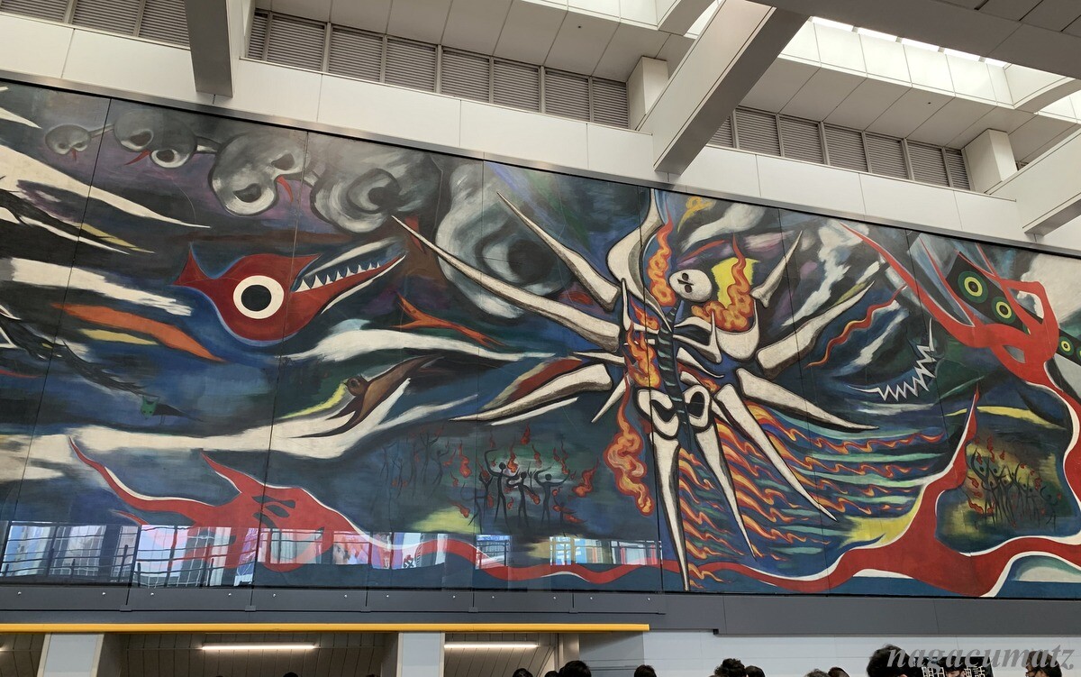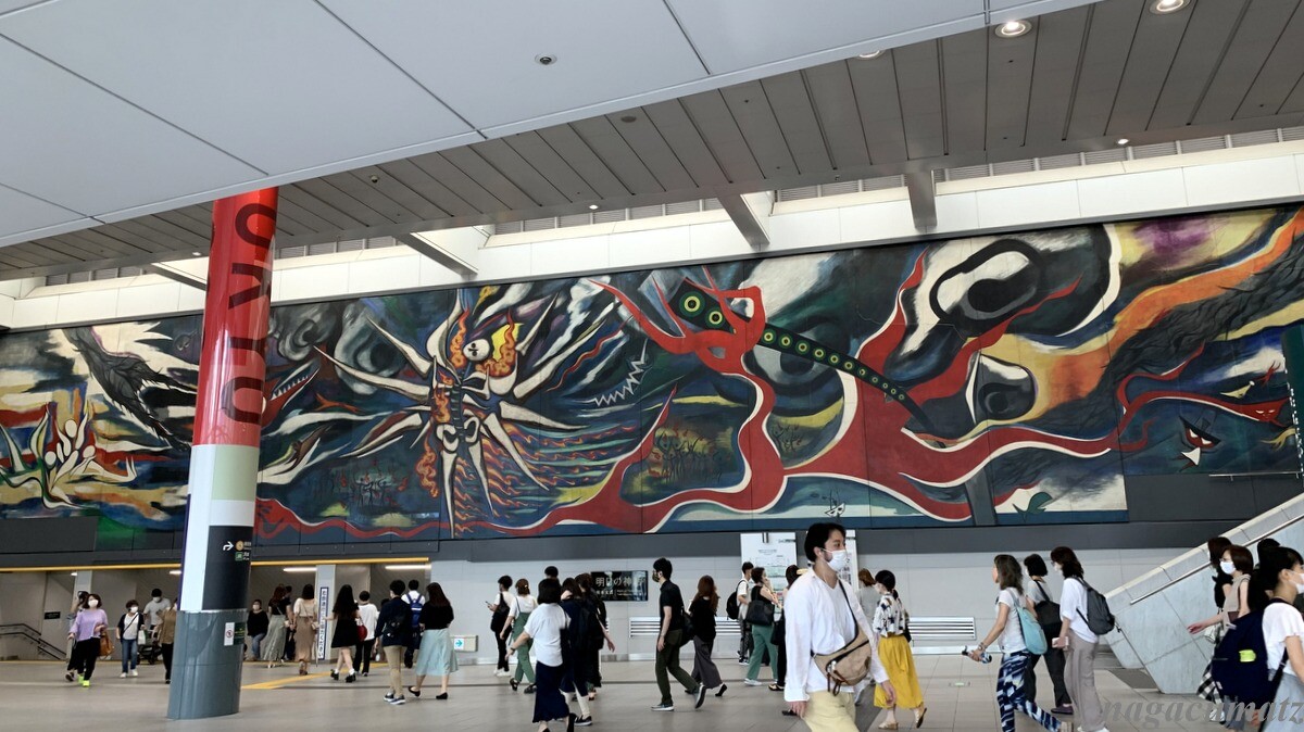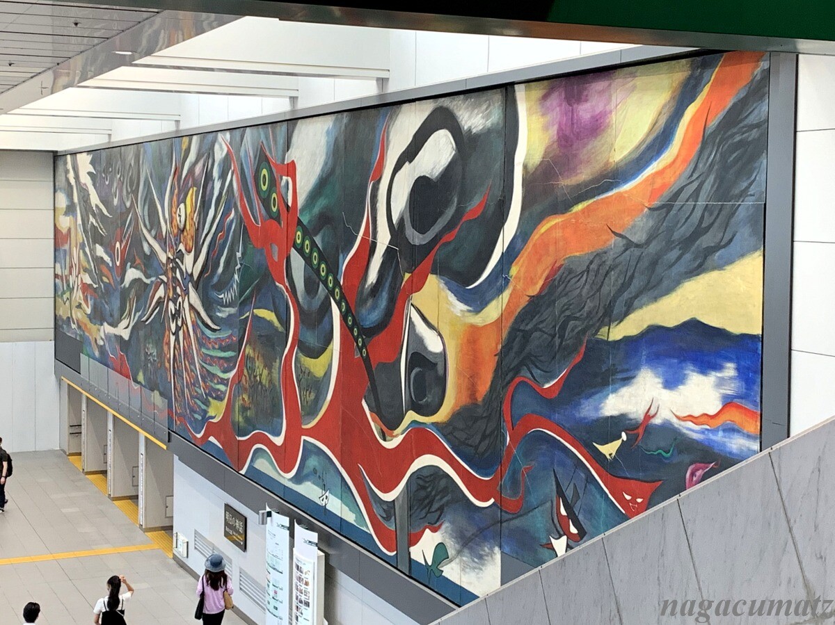 京王井の頭線駅の渋谷駅コンコースに巨大な岡本太郎氏の壁画がある。長さ30メートル、高さ5.5メートル。